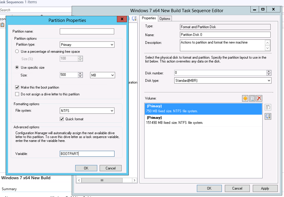Double click to open each volume and make the required changes. Increase the default size of the boot partition and enter a variable name. We will use this to ensure that the correct image gets deployed to the correct volume